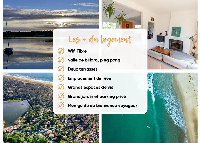 Situé à 13 minutes à pied de la Plage des Estagnots, Villa L'Accalmie - 10 Pers - Entre Lac Et Mer propose à ses clients de profiter d'un jardin. Dotée du Wi-Fi et d'un parking privé gratuit, villa se trouve à 2 km d'Atlantic Park Seignosse.